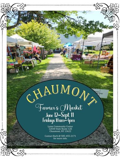 We're on the main street of Chaumont in the front yard of the Lyme Community Center. Come check us out!