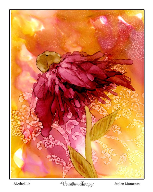 In the Inked Flowers class, you'll learn how to use different techniques in alcohol inks to make two 5x7 paintings and then we'll mat them to 8x10. How much patience do you have? lol